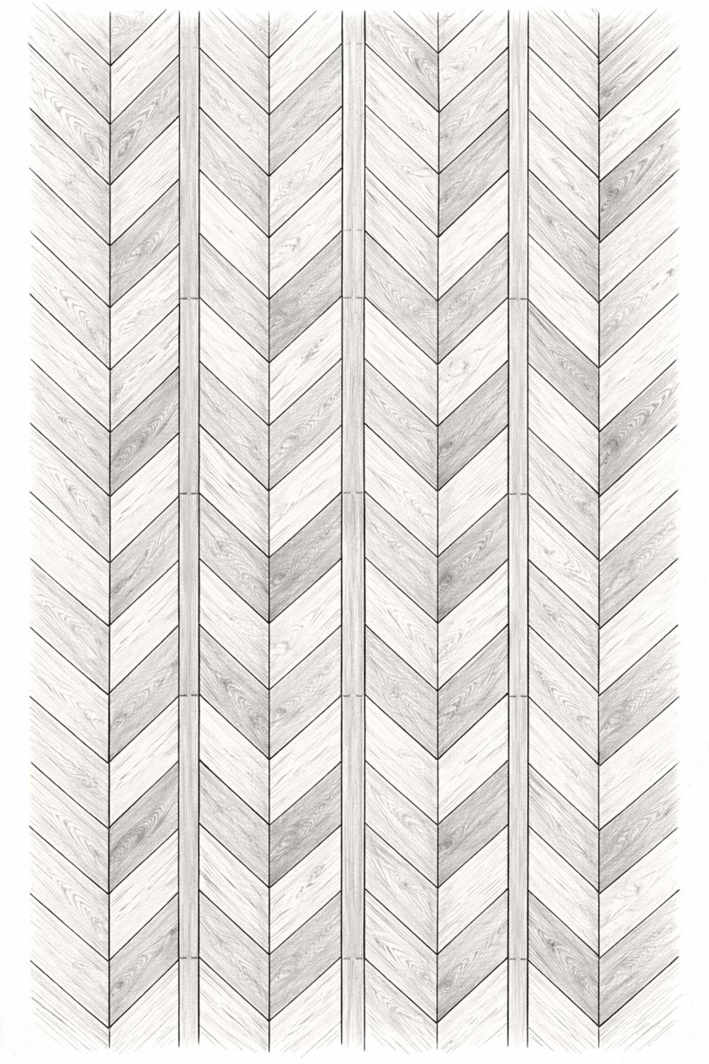Le parquet fougère reprend le principe des chevrons du point de Hongrie mais ajoute une lame droite centrale entre chaque chevron, pour un motif plus graphique.